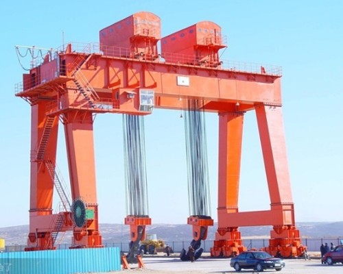 1、門座式起重機:門座起重機是具有沿地面軌道運行,下方可通過鐵路車輛或其他地面車輛的門形座架的可回轉(zhuǎn)臂架型起重機。它廣泛應(yīng)用于港口、碼頭貨物的機械裝卸、造船廠船舶的施工、安裝,以及大型水電站工地的建壩工程,是實現(xiàn)生產(chǎn)過程機械化不可缺少的重要設(shè)備。